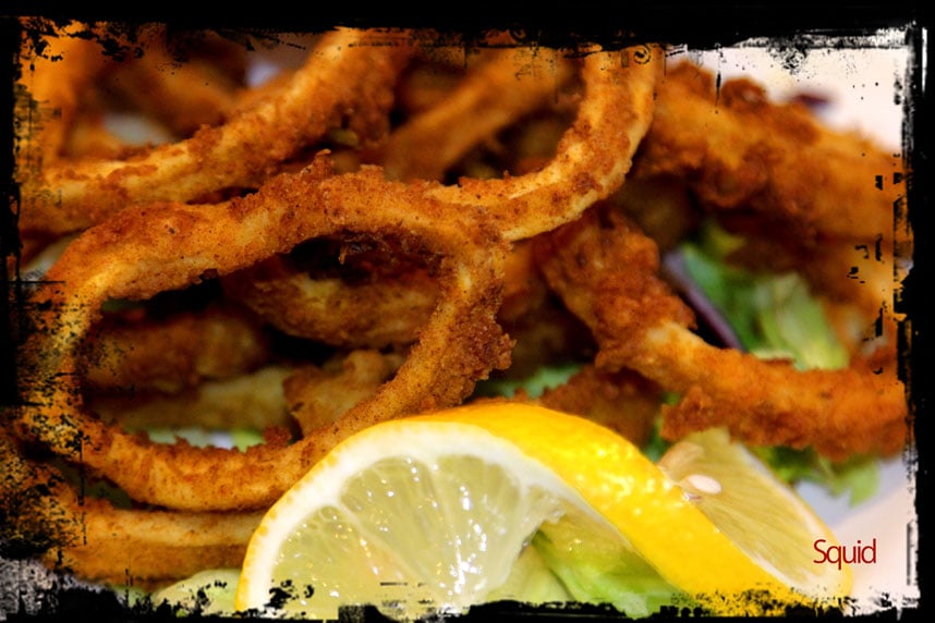 Battered squid marinated in herbs, deep-fried and served Nepalese style